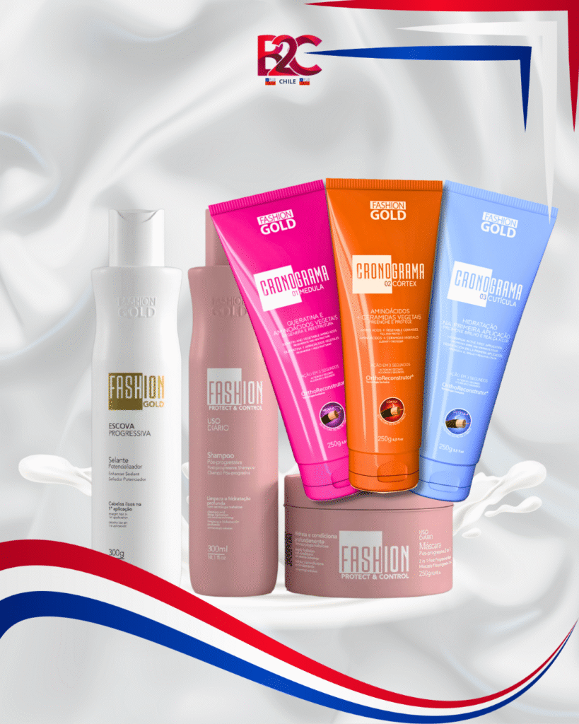 combo Cronograma Capilar + Alisado Fashion Gold 500gr + Shampoo + Mask 500ml